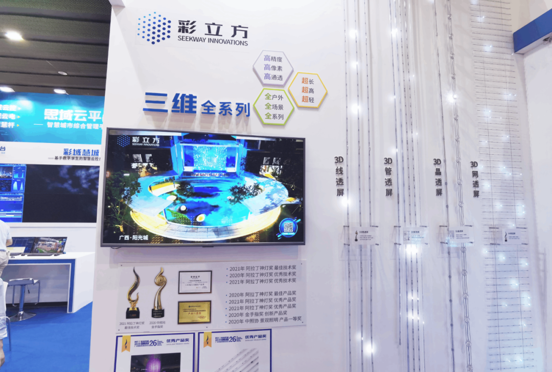 现场展示产品有3D超长管、3D线透屏、3D晶透屏和3D网透屏,均获得行业专项奖。