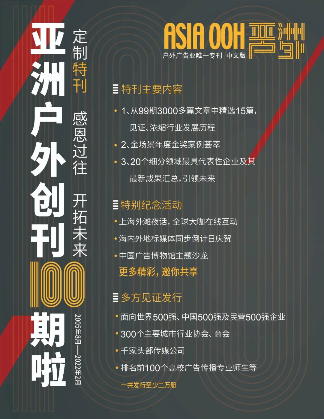 如今,空间有限的边界已被打破了,户外作为一个古老的媒体正在走向新生,在各种新技术、新理念的加持下将成为内容无线、传输无限、场景无限的崭新媒体。无论是广告主还是艺术从业者必将在这里得到极大的发展。