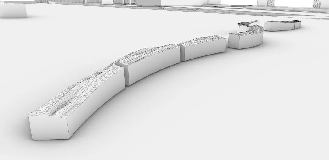 这一组由7张“水波纹长凳”构成的长达17米的作品,系出于张周捷创作自2016年的“Mesh Bench”。(敬请期待)