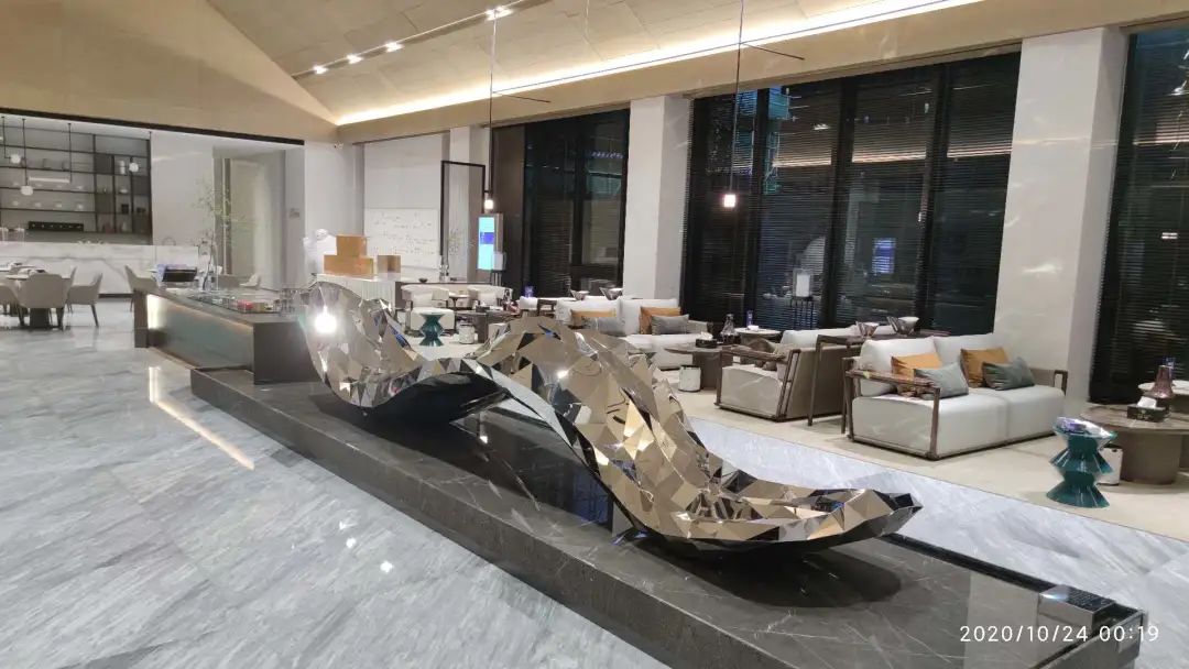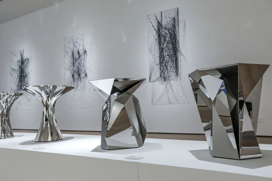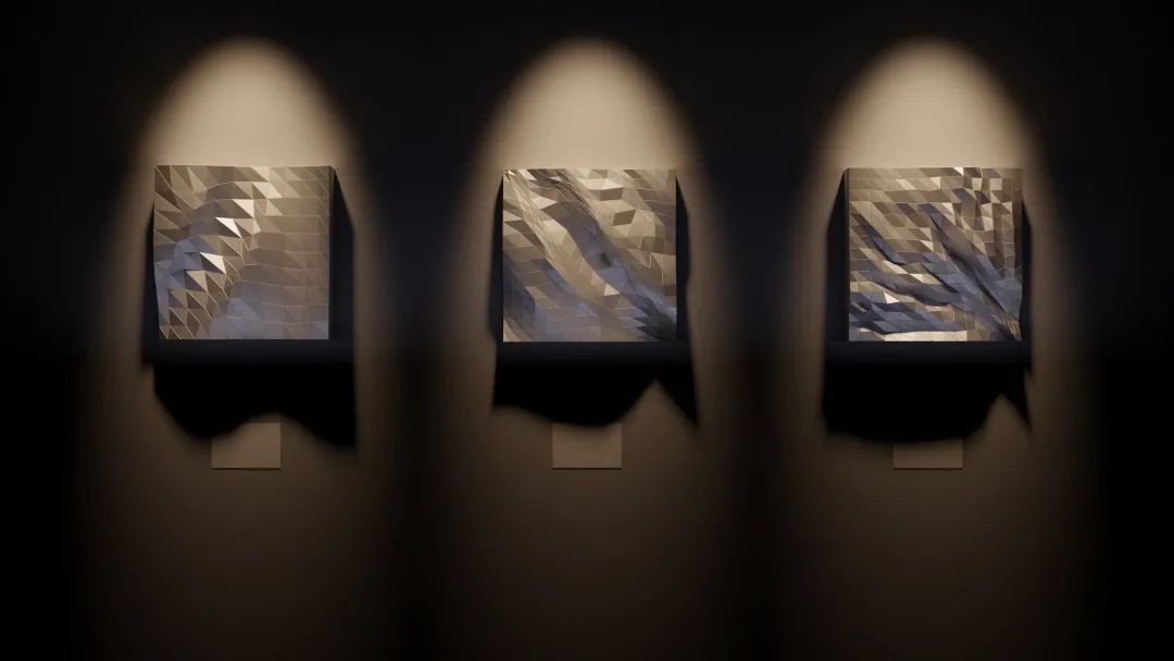网格作为计算机三维几何的基础图形语言,也是现实事物投射于虚拟世界的重要媒介。在 J Hotel 亮相的雕塑作品《Mesh》便脱胎于这场探索,一张方形之内水波流动,不锈钢的镜面效果在灯光照射下仿若波光粼粼。(敬请期待)