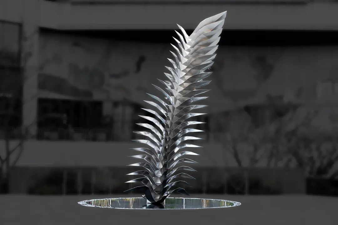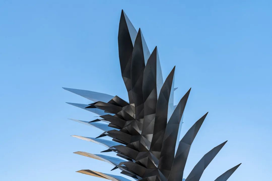 通过捕捉所描绘艺术形态的静态片段,从而展现雕塑作品的通体爆发式力量,于公众空间激发人们多元的感知。值得一提的是,艺术家刻意提取并抽象了所描绘物品之原型,鸟喙、翅膀与身体以三角面建构而成。