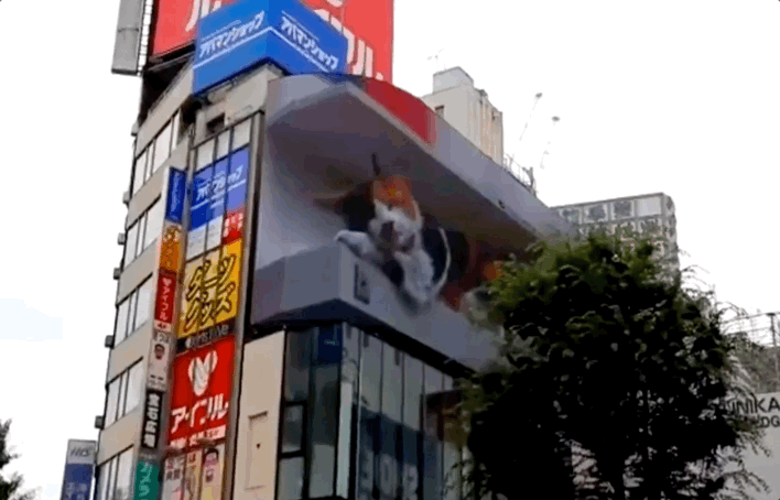 联合品牌:白·科技 X 多巴胺 White·Tech X Dopamine《PANDORA Cube》作品载体是一个白立方体,创作团队使用了最新的立体投影技术,创作出主题影像视频,用多个投影仪投出立体影像。大大延展了空间的实用性。同样的空间可以承载更多的影像信息。灵活多变,减少同类型产品的成本。适用于展示陈列、标志性物体、网红打卡、投放广告、舞台应用等等。在同系列竞品中有视觉效果强烈、主题可变、拆卸灵活等优势。该项目是由Cross Space委托,由MicroAd Digital Signage和Unica共同运营的“Cross Shinjuku Vision”项目,采用6mm的LED SMD规格和裸眼3D技术,通过利用曲面播放一般平面标牌无法展示的3D图像。该公司致力于以电影大片的质量创造的3D巨型花猫将给附近的用户带来惊喜、欢笑和治愈。这个3D猫咪区别于其他裸眼3D的作品的最大特点就是其真实性和日常性。现在许多3D作品虽然努力做出了三维的效果,但是表现的都是比较科幻的场景,因此观众立刻就能意识到这是CG,代入感就会随之降低。