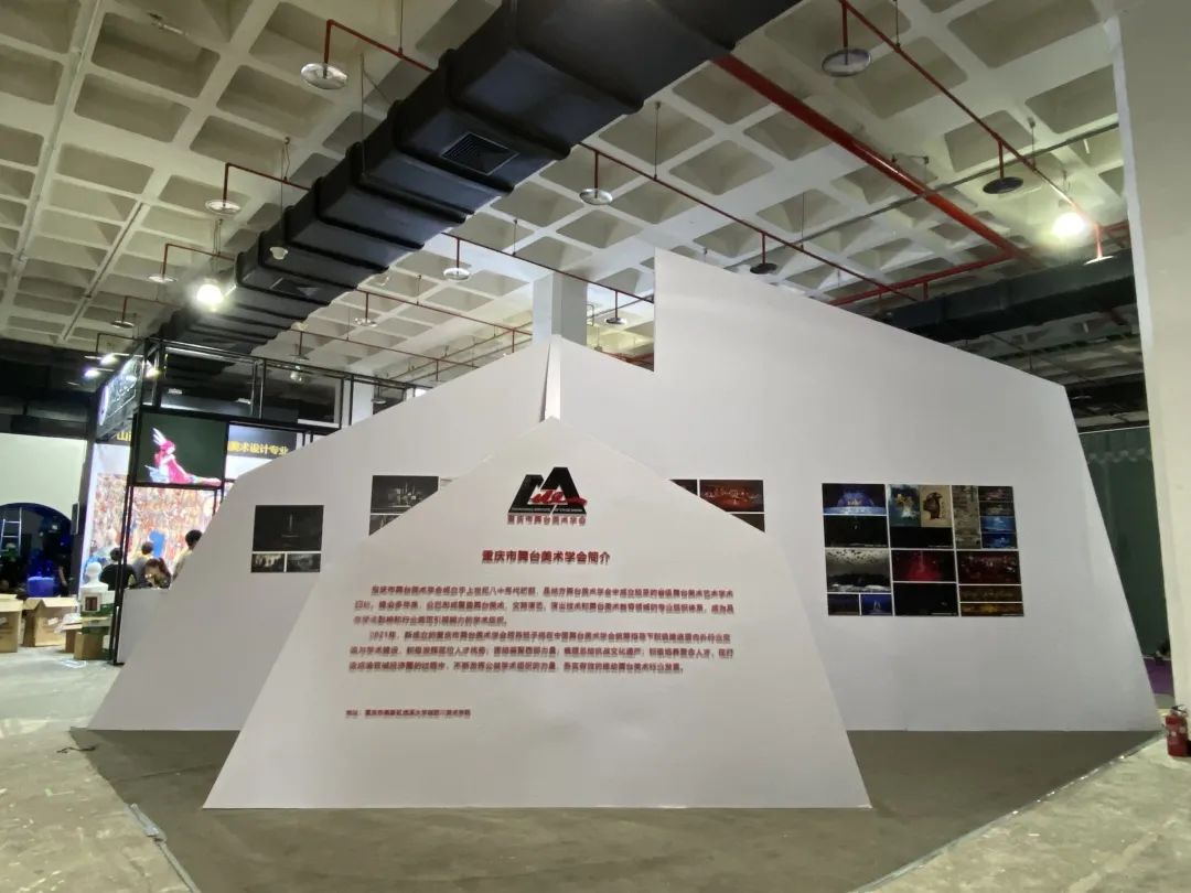重庆市舞台美术学会展区坐落在中国国际展览中心一号馆和二号馆区域,整体设计将“山水之城”形象融入展览形式之中,集中展示2016至2021年间来自重庆文艺院团和科研创作高校的作品,展览形式包括话剧、芭蕾舞剧、秀场杂技、舞台模型、电影美术场景设计、人物造型、综艺舞台、多媒体影像制作等,以跨界多元的面貌亮相四届展。