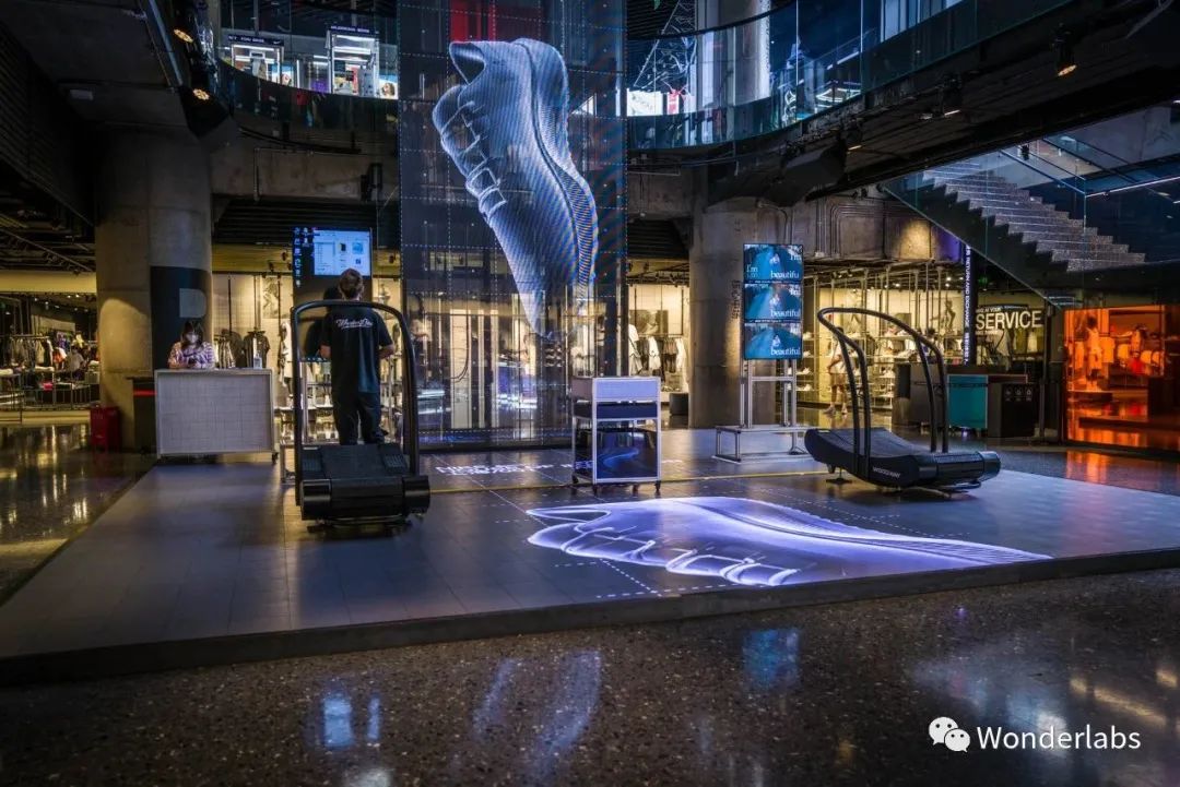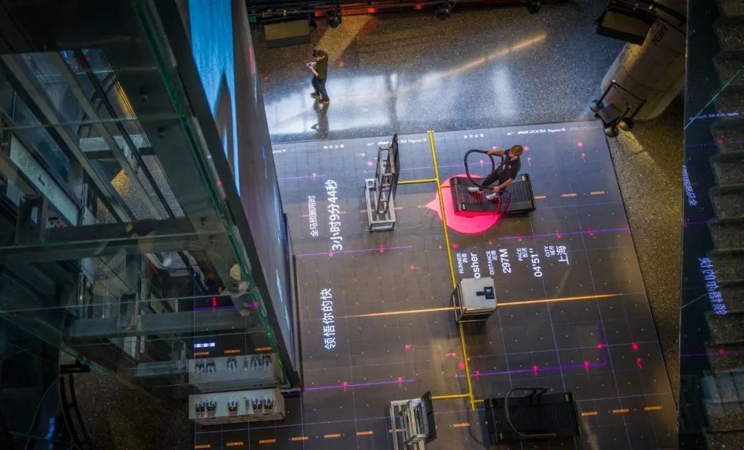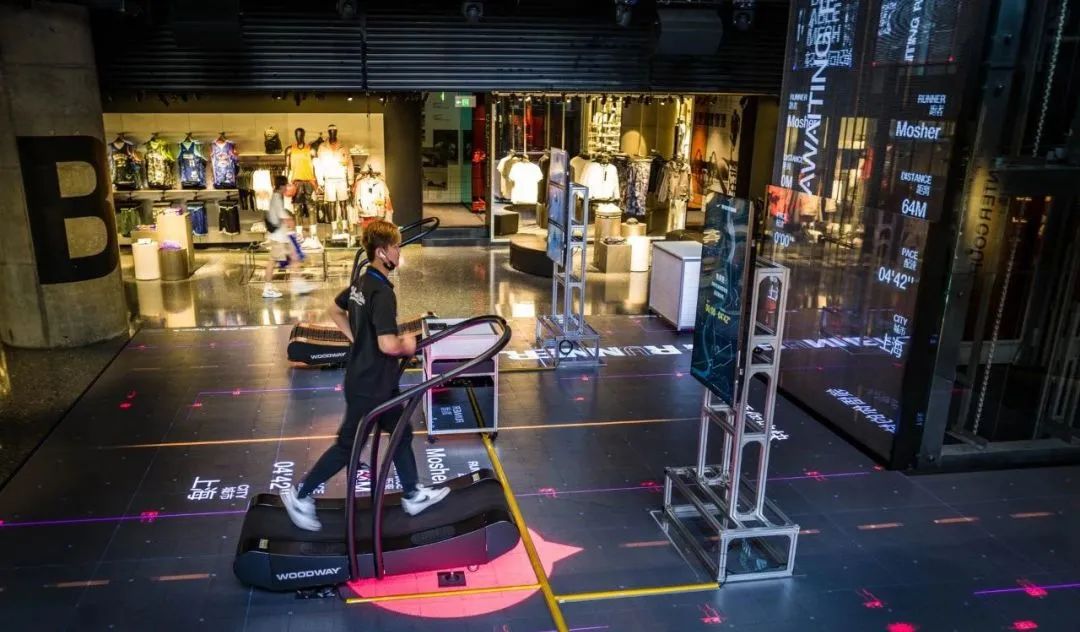 如果说卡地亚的展示更多的是吸引来往消费者的目光,耐克的装置能与消费者进行零距离的互动。