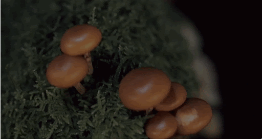 整个画面并不至于夸张,发光的植物、神奇蘑菇和周围的自然风光融为一体,让人有一种不真切的美妙感受。