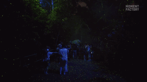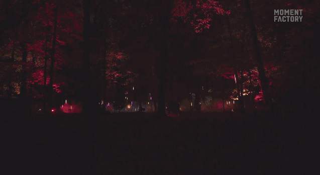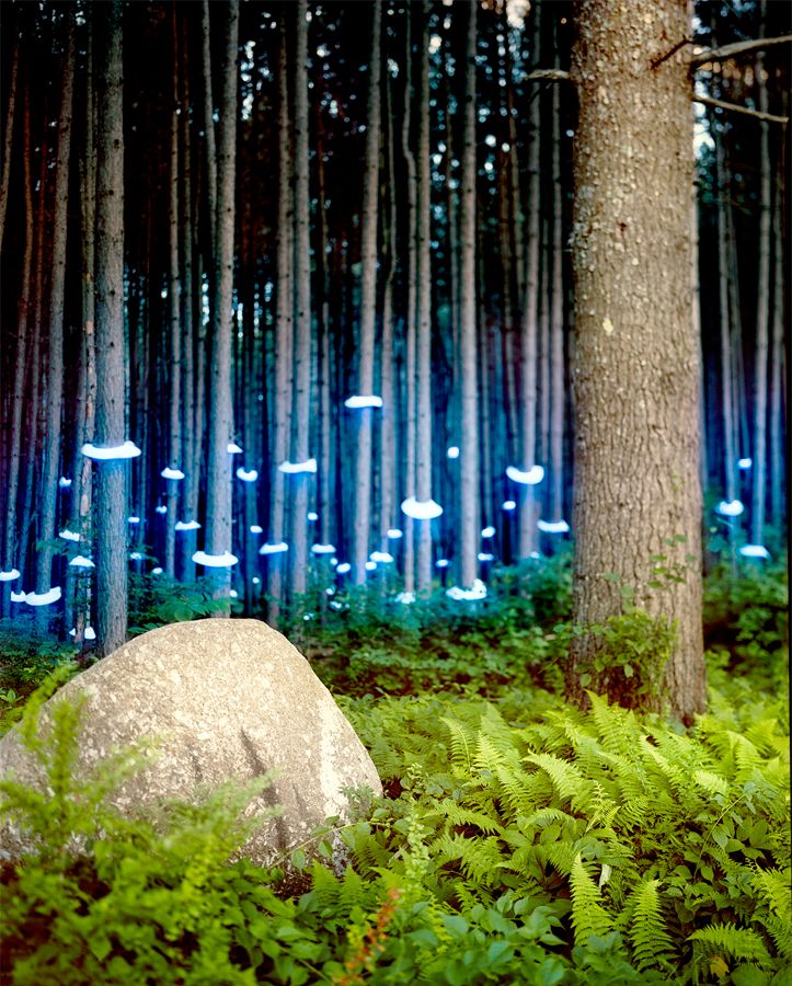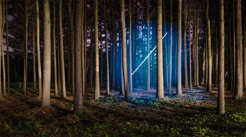 这是他心中的森林,提到现实中的森林,我们的第一印象还是高耸的树木和生机勃勃的绿,当人为的光线进入森林,会发生怎样有趣的反应?