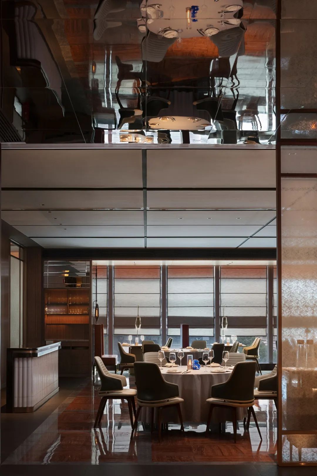 被反射出的景物无形中丰富了空间的层次