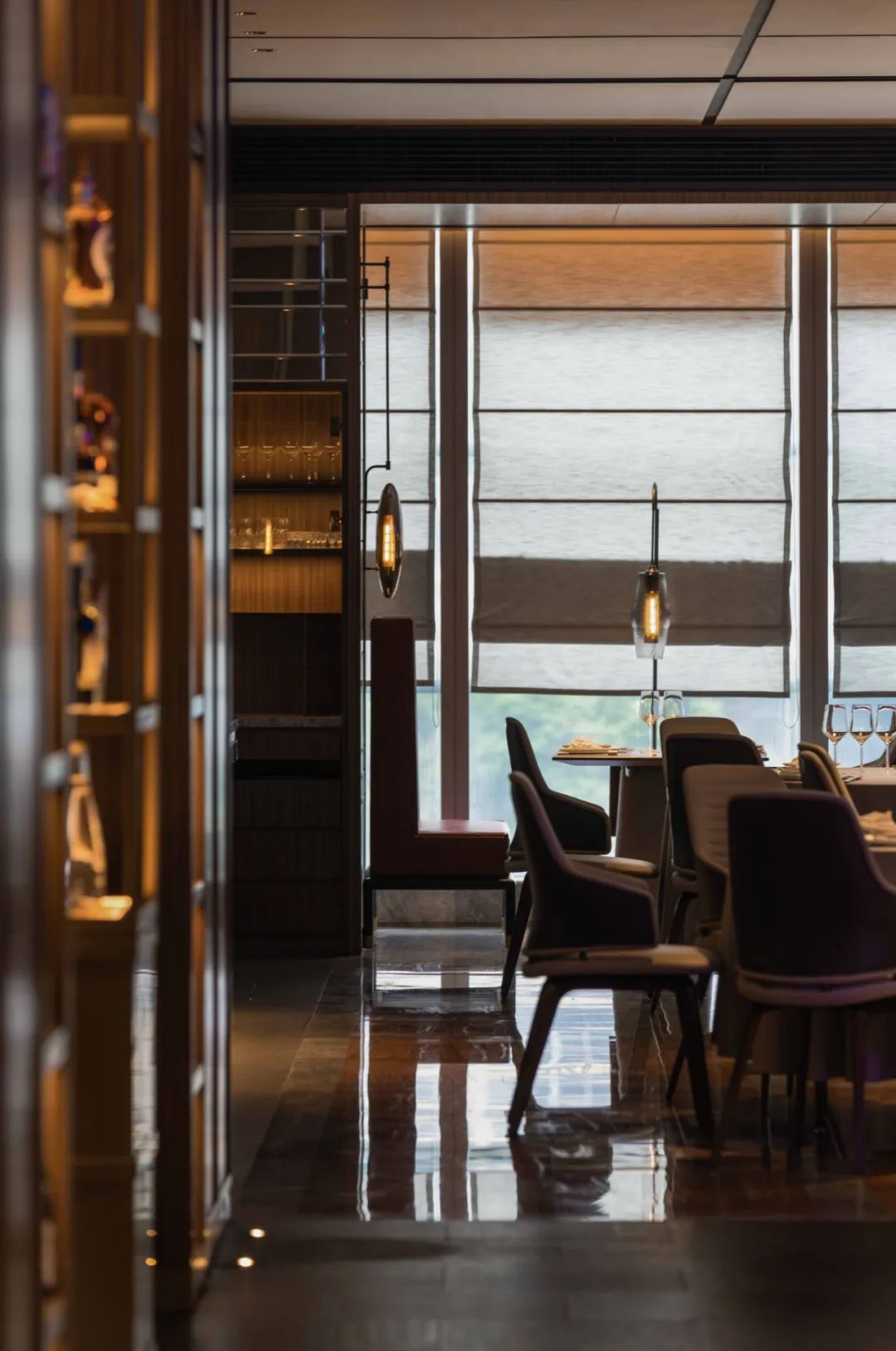 美酒佳肴,窗边或明或暗