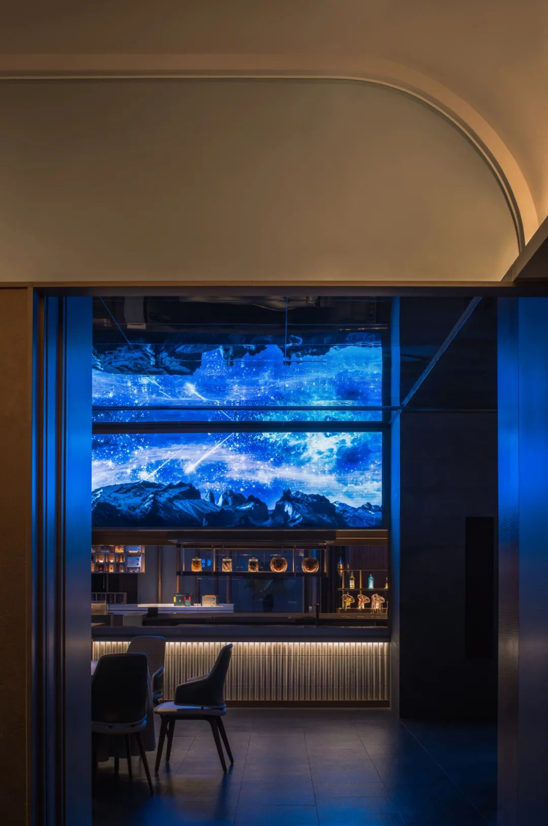星点灯光从“树底”透出,远处蓝光漂浮