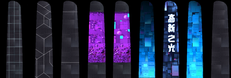 现代感的赛博朋克色彩融合,呈现独具特色的强烈视觉感受,彰显着成都高新区无限生命与活力的交织脉络,随着节奏不断变化,漂浮和碰撞之中,带有不确定的惊喜。