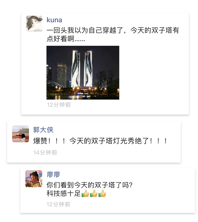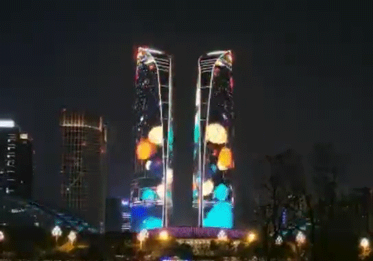 】五一长假,每晚19:00-22:00成都交子金融双塔灯光秀准时上演,还没亲眼目睹的小伙伴们,抓紧到现场感受这场充满科技感的视觉盛宴吧!