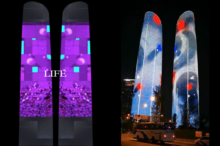 1、当建筑本身的使用只是一个屏幕的话,那我们为什么不在屏幕上做要在建筑上做呢?