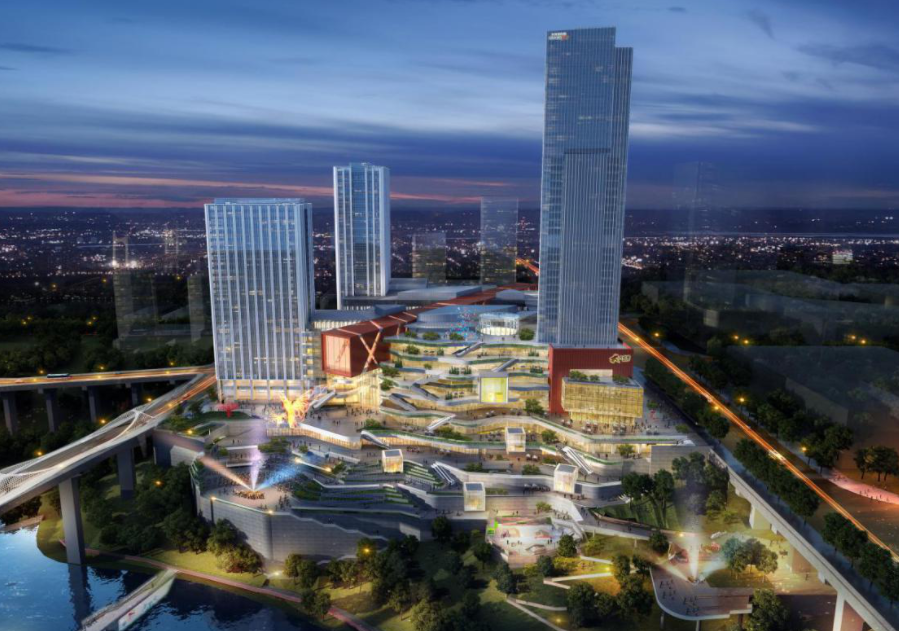 长沙北辰三角洲大悦城商业建筑体量14万㎡,其中地上7层,地下1层,规划停车位1682个,计划于2021年9月盛大开业。长沙北辰三角洲大悦城,围绕“爱俏敢耍,潮动星城”的理念,以“全城青年潮流生活引力场”为定位,长沙北辰三角洲大悦城将以“星系、星球”为主要设计元素,打造“生活美学空间”“潮流生活空间”“星系主题公共艺术空间”三大主题空间。长沙北辰三角洲大悦城有着独特的外形,750米的超长亲水临江面,层层退台优雅渐次叠加。中庭设计借鉴了最近比较火的新加坡樟宜机场购物中心的设计,大中庭设计滑梯和伞状瀑布设计,让商业广场的高层空间与低层空间联动起来,增强了空间的趣味性。项目还将结合互联网、人工智能与大数据系统构建智慧购物生态体系。通过全业态品牌聚集,打造涵盖运动品牌旗舰、国际精品美妆护肤、精品快时尚服饰、长沙品质美食、青年娱乐体验、品质生活方式、亲子互娱空间等组合业态,并引入多家华中首店、长沙首店,强势聚合品牌优势,填补长沙品质潮流商业空白,打造长沙潮流新地标。