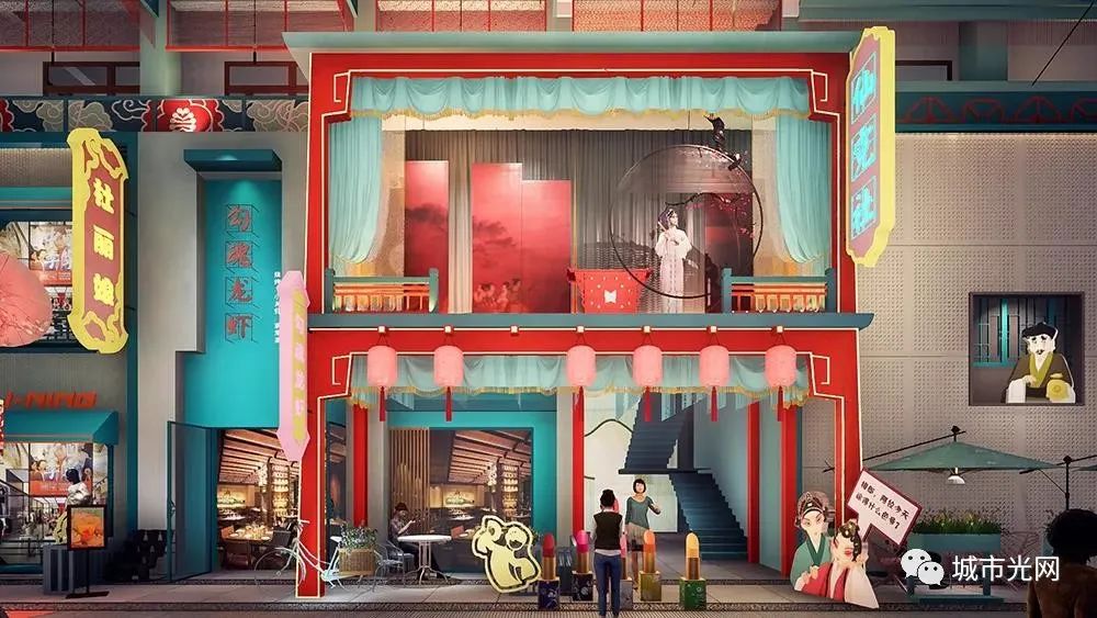 顺德华侨城欢乐海岸PLUS的曲水湾风情商业街也是国潮的代表。作为顺德版的“清明上河图”,商业街将美食、龙舟、香云纱、曲艺、广绣等广府传统文化IP融合其中。项目采用传统岭南建筑的院落式规划布局,由荷院、水院、戏院三大院落组团构成。欢乐海岸PLUS搜集了约110万块旧砖,经过清洗、切割处理,采用传统工艺砌筑了一整面斑驳青砖墙;彩色玻璃也是一大亮点;“蚝巷”完美还原了顺德知名景点“碧江金楼”的空间意境。