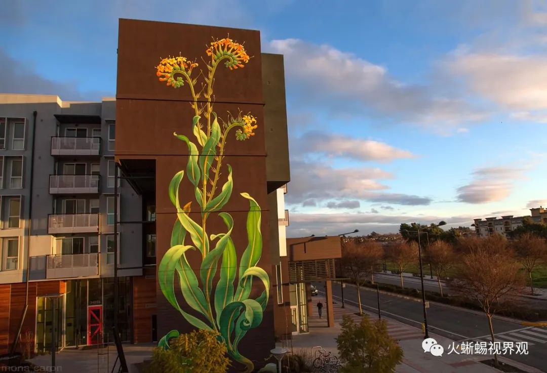 壁画,在大多数的印象中无非就是画在墙上的画。而美国旧金山艺术家Mona Caron(莫娜·卡隆)就将壁画艺术运用到了极致。她的壁画作品通常会出现在摩天大楼上。没错,她是将一整幅画画在摩天大楼墙上的人。