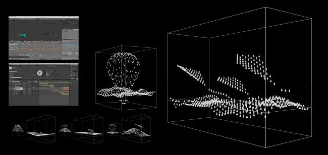 为了编排雕塑,而构建了一个 3D 模型,手工制作原型动画,然后将数据传输到计算机程序,其中每个序列都被编写为自定义代码。最后,数据被转换并以运动控制器和伺服电机可以理解的形式反馈给动力学雕塑。