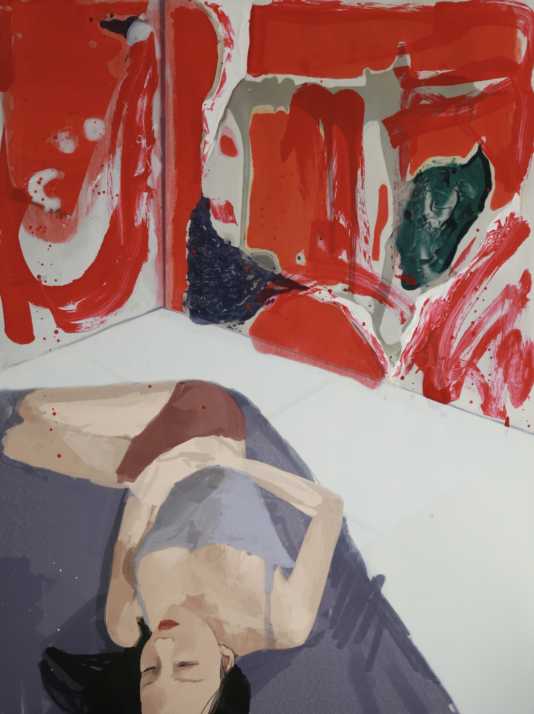 作品从论文的论点出发,分析了具体派美术的创作特点与绘画方式,结合以梦境下的现实这一具象的形态,表现当下状态年轻人的生活与思考分离的一种状态。利用丙烯与综合材料混合的表现手法,通过场景《DREAM1》、《DREAM2》、《DREAM3》分别表达叙述了在当今社会时代对于中年轻人思维方式与生活状态的一种关切。