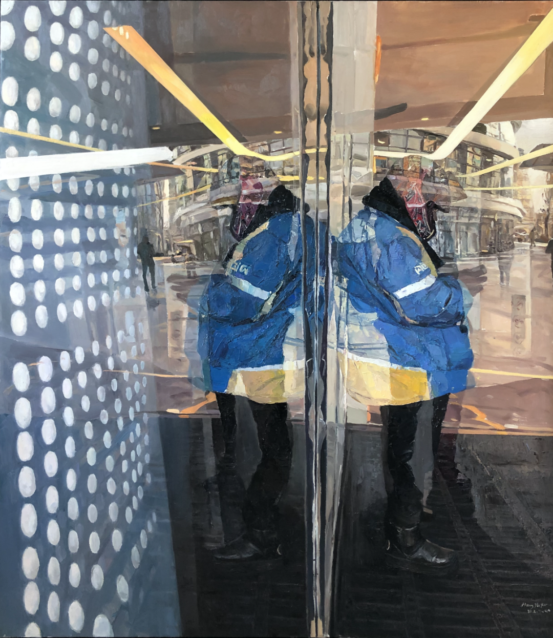 快递员作为当今“快”文化生活的重要组成部分,有其特有的社会文化内涵,通过特殊视角观察与表达,画面虚实相映,快递员们为了更好生活而努力拼搏,奋勇直前,哪怕前路有许多未知与困难,也绝难打倒一个拼搏直前的勇者。这与我对于当代生活与艺术的理解来说是理想的创作主题,充分突显城市发展与生活间的联系与价值体现。