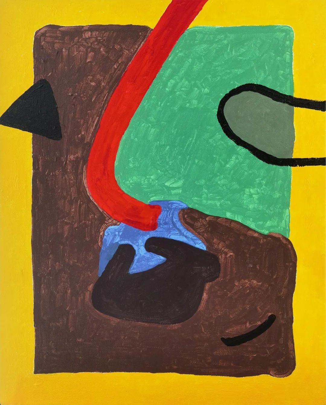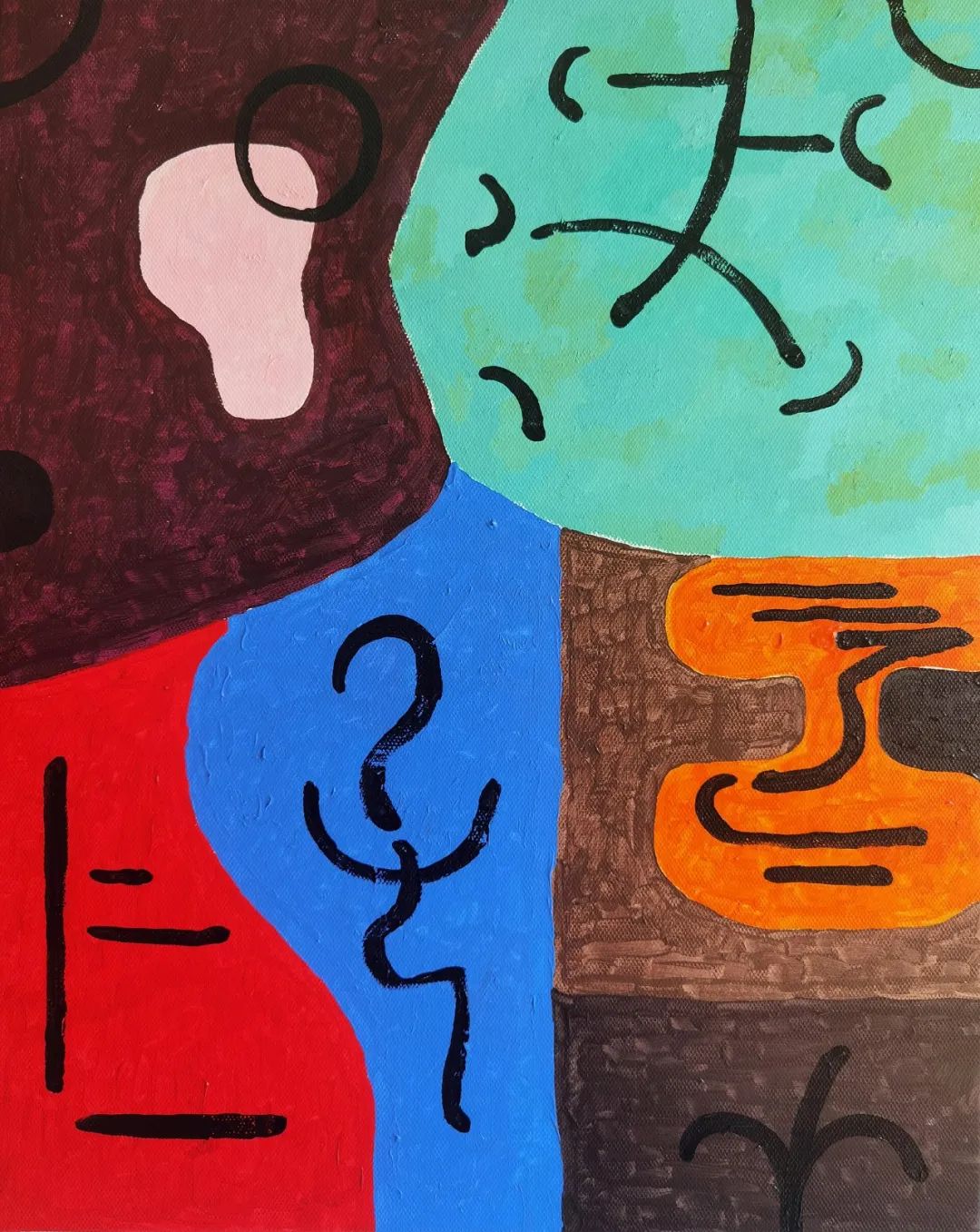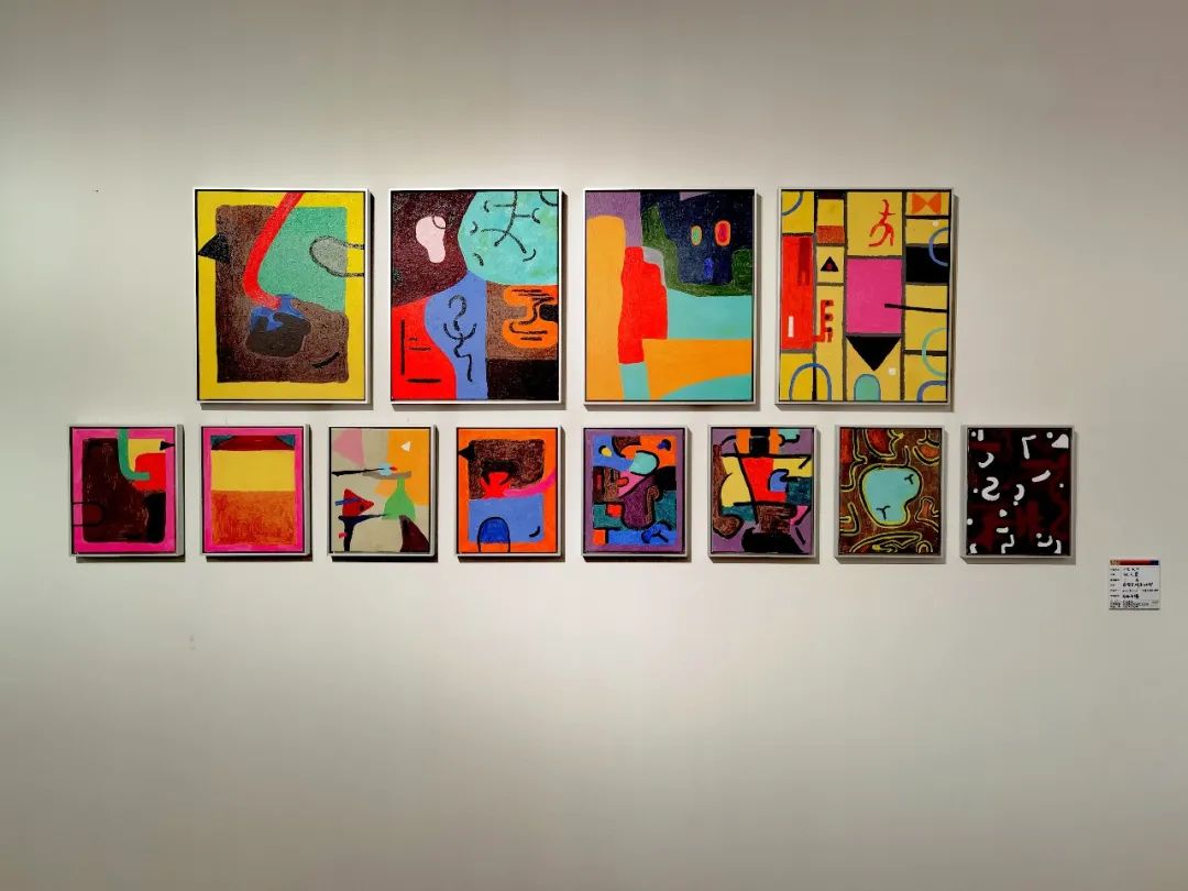 在毕业创作《生长》这组作品中,画理逻辑契合抽象绘画绘制原则,刻画笔触来源于自我的心灵视像。笔触表现出抽象的偶发状态,是非现实的、非具象的与心灵化的视觉形象。不同色彩所在的块面相互交织叠合,体现众多无方向偶然性的、统筹于刻意绘制法则下的抽象画理逻辑结构,从而形成整体配合相互平衡协调的“抽象视觉结构”。