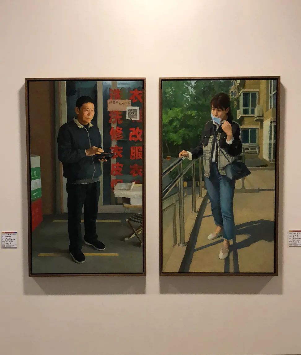 我的两幅毕业作品分别为《盘算“疫”下生计》《开启“疫”后之美》,我着眼于身边的普通人作为创作源泉,让观众看到作品的第一眼感到很亲切。作品名字中的“盘算”“开启”两个词一语双关,既说明画面人物的动作,同时也体现人物的内心世界。两幅作品放在一起产生强烈对比:一幅描绘“疫情下”,一幅描绘“疫情后”;一幅在室内,一幅在室外;一幅是男性长者,一幅是年轻女孩;一幅焦虑写在脸上,一幅绽放美丽笑容……通过观察日常生活的点点滴滴,进而形成创作思路。我的作品朴实,创作这样两幅作品的目的,是想从普通人的角度出发,记录在这段特殊的历史时间段全国人民取得疫情防控伟大胜利的心路历程,同时也反映出人们对美好生活的向往与追求。
