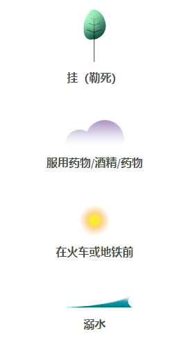 如何将自杀方法形象化又不会太明显、太沉重或太残忍是最先要思考的问题。Sonja Kuijpers 联想到与自杀方法相关的元素为创作的素材,因此画面中没有出现绞索、药丸、尸体或其他真实的人,取而代之的是树、海浪和云。