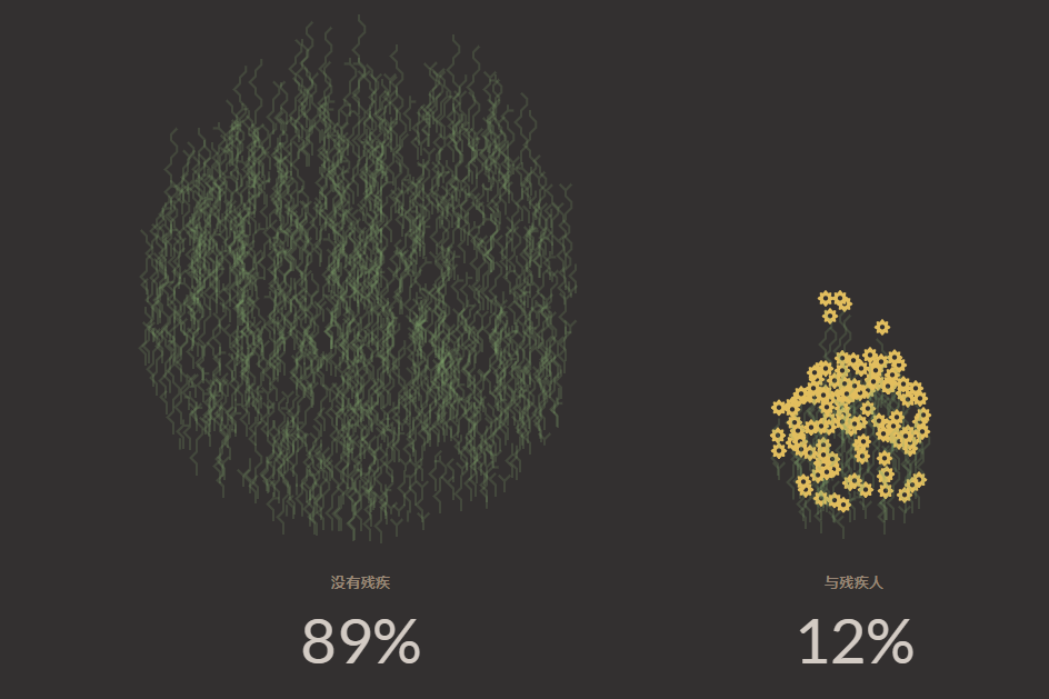 不同样式的植物代表了每个儿童的不同情况:植物的高度表示孩子的年龄;以“V”形结尾的植物,表示孩子有兄弟姐妹;花朵表明这个孩子有身体或认知障碍。