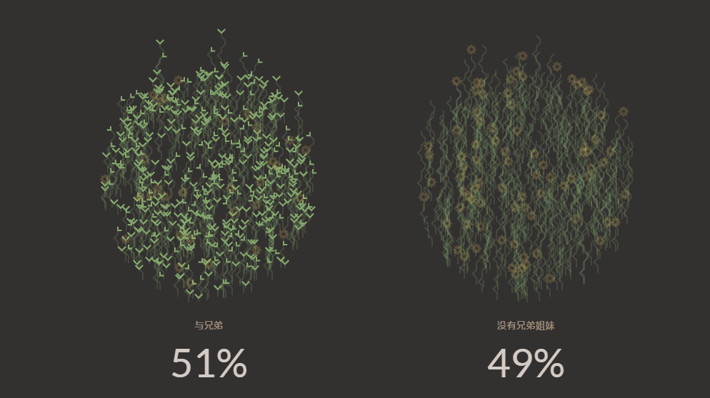 为了不涉及更敏感的信息,这个模拟器使用了一个视觉隐喻,将每个孩子都描绘成一株随着岁月流逝而生长的小植物。