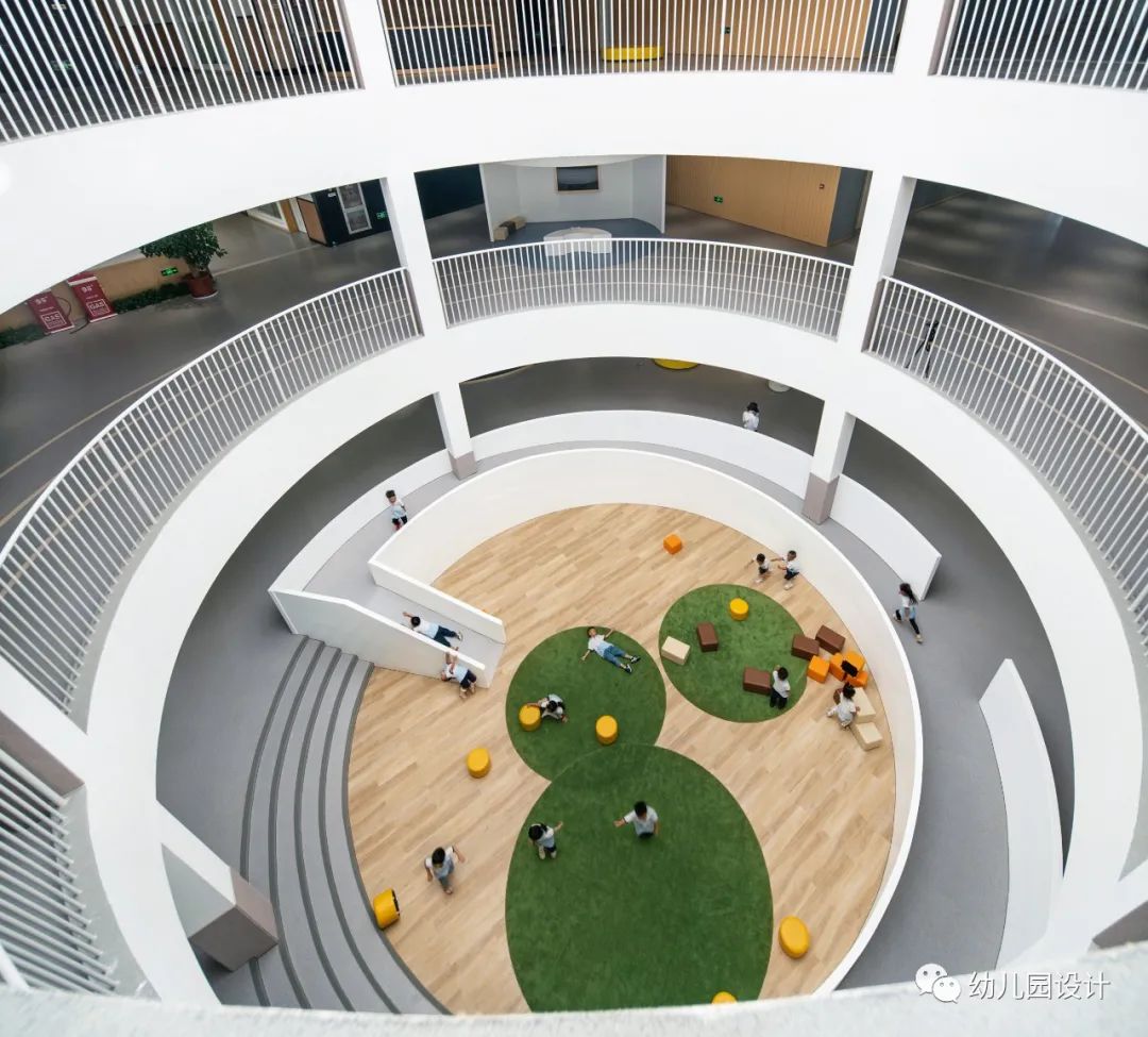 利用中庭、大台阶、环廊等设计链接不同区域,为孩子们和老师们提供了最合理的交往和展示空间,也为孩子和老师提供了一个适合多个孩子交流与学习的公共区域,舒适且开放。