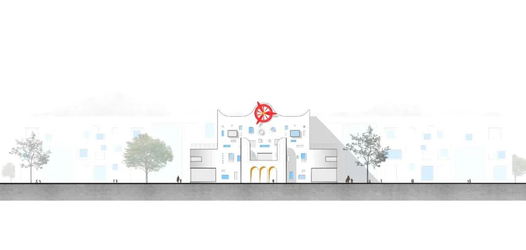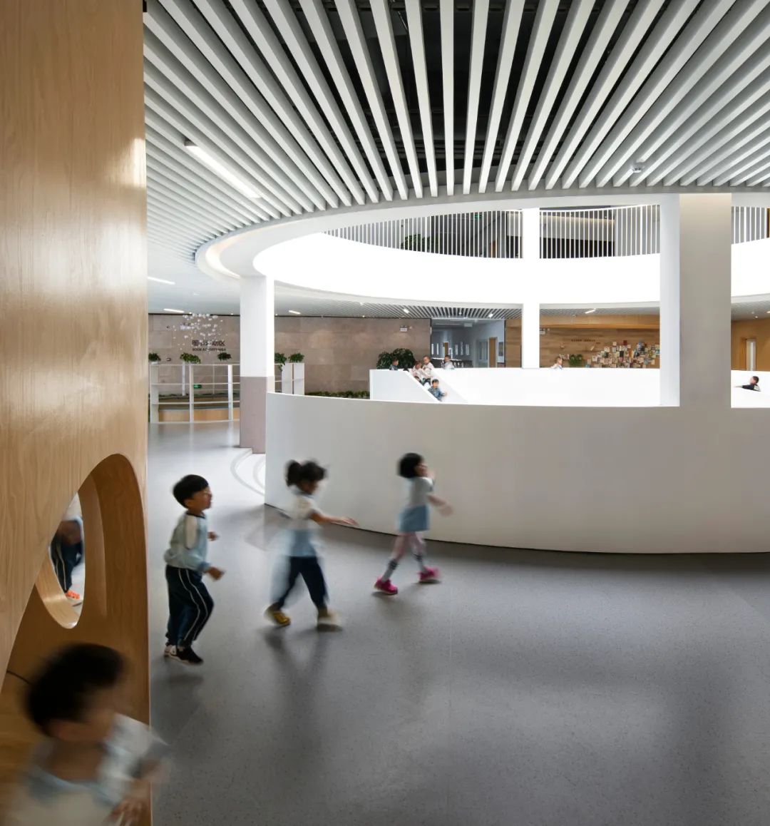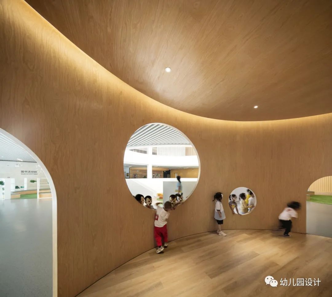 “螺旋桨”不仅能够指引孩子们走进园所,也成为此幼儿园的精神象征,孩子们能在游览中学习,在建筑赋予的能量中唤醒孩子们和来访者的感官,深深感受到学校与建筑之间的亲密连接,感知到这片土地与自我的关系,启发出孩子们更多天马行空的思考,形成独特的建筑和校园理念的对话体系,这个“螺旋桨”仿佛让幼儿园这个地方重新焕发出了新的生机,同时也为这所学校增添了有情感记忆的“精神象征”。