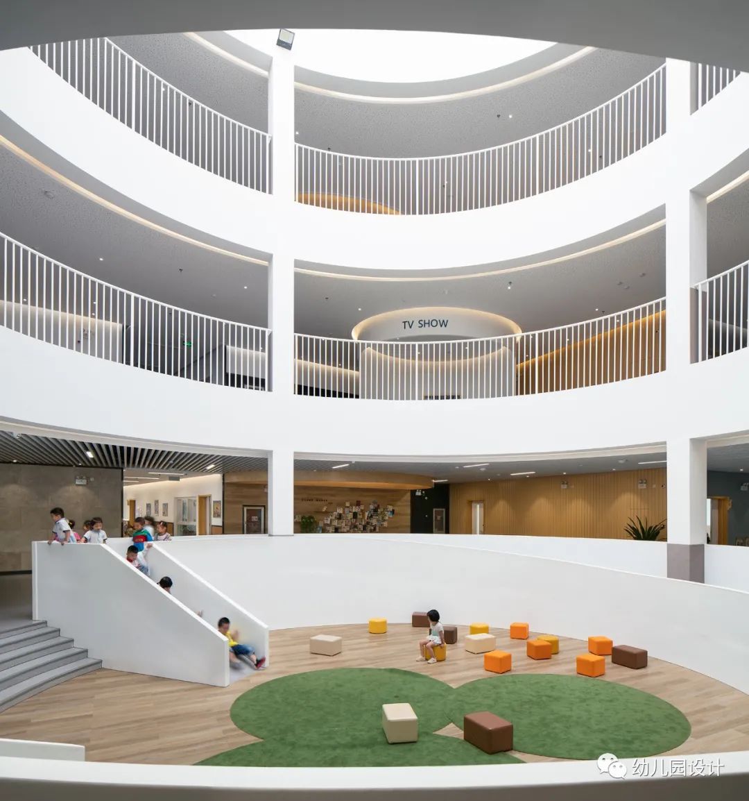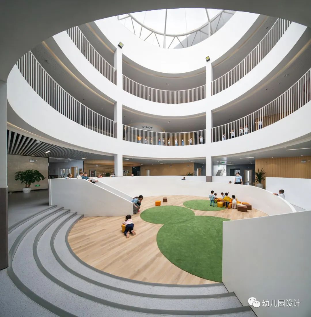 设计理念以“交流”为核心,创造出功能配套齐全、理性与温暖并行的学习与生活场,设计塑造了交流空间,空间引导孩子的行为,在这里,学习、生活、交流的师生,可以扶栏而立,可以席地而坐,利用中庭、大台阶、环廊等设计链接不同区域,为孩子们和老师们提供了最合理的交往和展示空间,师生们都能够找到适合自己的一处天地,随着时间时间的沉淀将形成纸飞机幼儿园独特的文化氛围。