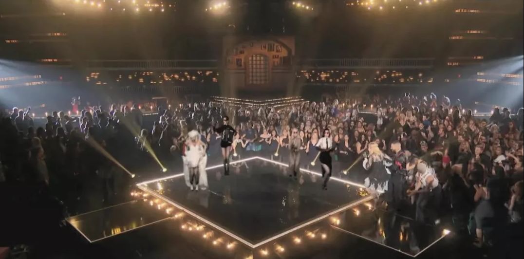 这个表演展示了最前沿的AR和体积捕捉技术,颁奖典礼的参加者能够在米高梅大花园竞技场内的屏幕上看到麦当娜的AR表现,现场表演相当活跃!