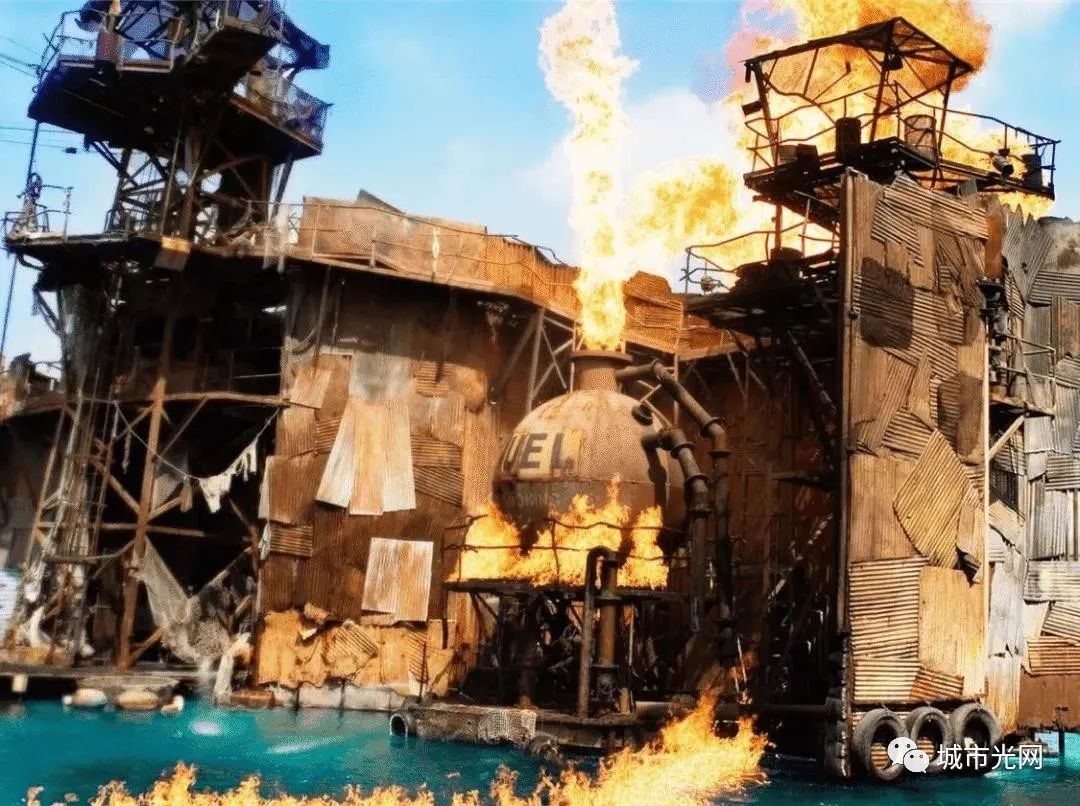 上世界90年代的著名电影《未来水世界》是这个区域的创作原型。未来水世界的「水上爆破特效」一直都是环球影城最受欢迎的项目之一。