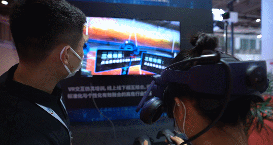 现场还设置了5G+智慧巡检的体验展项,只需要穿戴VR设备,即可在第一视角感受实际场景的巡检工作,体验特种行业的工作流程。