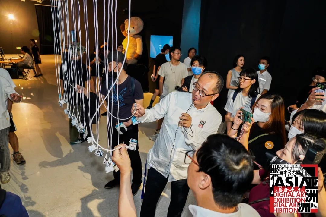 ▲ “2021亚洲数字艺术展”现场,策展人邱志杰在导览,北京时代美术馆