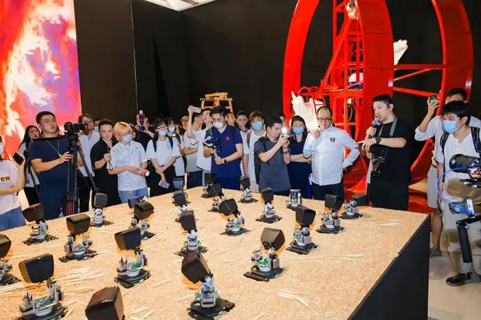 ▲ “2021亚洲数字艺术展”现场,孟松林作品《噬光虫》,互动装置,北京时代美术馆