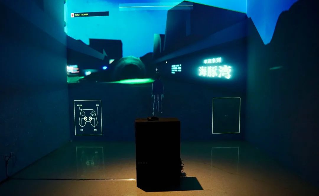 由陈子健、杨金荷、罗琬烨、陈诺、蒋博琴创作的艺术奖获奖作品《海豚湾》以血色海豚湾为主题,建造6个视觉交互空间,玩家控制虚拟角色,可在这虚幻与真实的空间中行走浏览。每个空间所带给人的感受有所不同,有海豚的悲鸣空间,有太地町村民维系情感的空间,有爆炸式媒体空间,用不同空间的呈现方式,介绍了海豚湾事件的缘由,当玩家走过湖岸,穿过湖底,最终来到海豚骨时,也能认识到整个事件的复杂与多面。