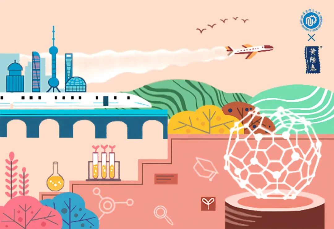 本次黄隆泰与华理联名茶品的视觉特邀艺手绘青春工作室参与设计,精美的主视觉图案出自工作室成员杨诗雯同学之手。采用清新柔和的配色呼应茶的淡雅香气,用几何风格绘制高铁、飞机驶达上海、来到华理校园的场景,希望这份礼物陪伴你来到全新的生活,能冲淡对陌生的迷茫,增添对新鲜的向往。