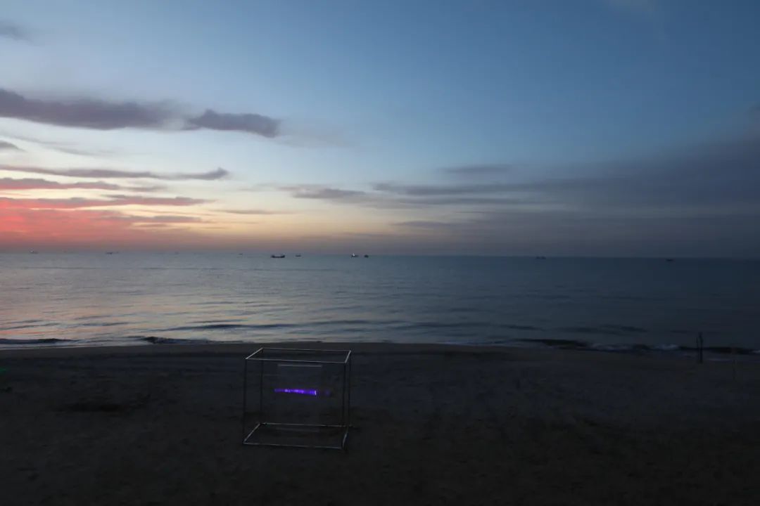 在刚结束不久的阿那亚“候鸟300”项目中,剑辰以古琴为原型创作了一台“风之基站”,这台基站也出现在他接下来的影像创作中。装置原本的叙事再次被打破,形成一种新的关系,这背后是他一直关注的“人-自然-技术”的议题。