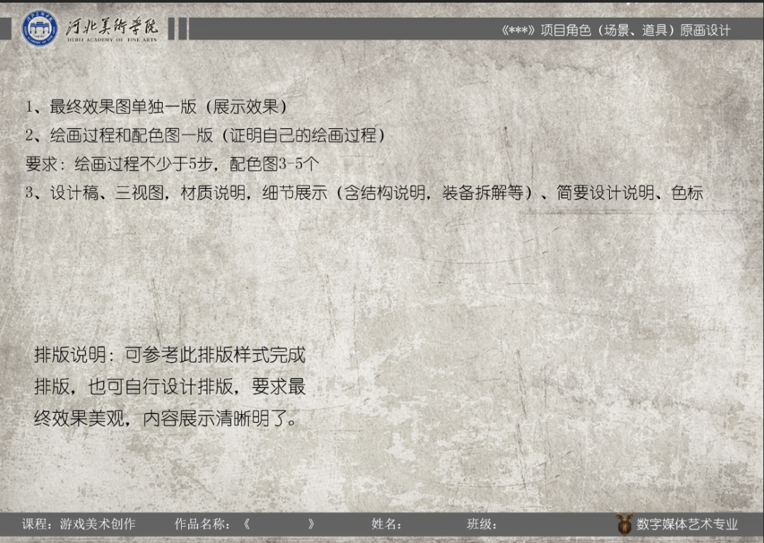 本次的研讨会由数字媒体教研室主任赵兴彪主持,重点围绕冬奥会、20年校庆和河北文化三大主题,对学生如何选定主题,毕业作品展示的格式规范、质量、时长以及数量进行讨论。原画方向,赵兴彪老师主要以毕业设计的提交形式、作品要求、作品数量、作品排版形式和注意事项进行讲解。作品的排版主要分为作品的整体氛围图、作品的概念与细节设计以及设计简介三部分,作品的精细化的呈现形式更能展现学生作品制作的精良程度。并提出作品必须原创,严禁抄袭,不得涉及政治,反动和色情等不良题材。