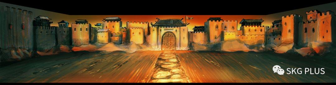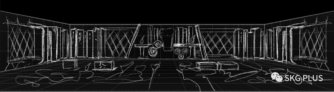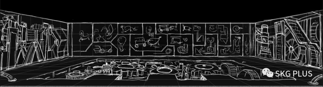 在前期阶段,根据剧本,针对沉浸式空间的载体,SKG+ 团队设计了大量的概念手稿,期望在以数字内容还原历史场景的基础上,提升观展者空间上的体验层次。