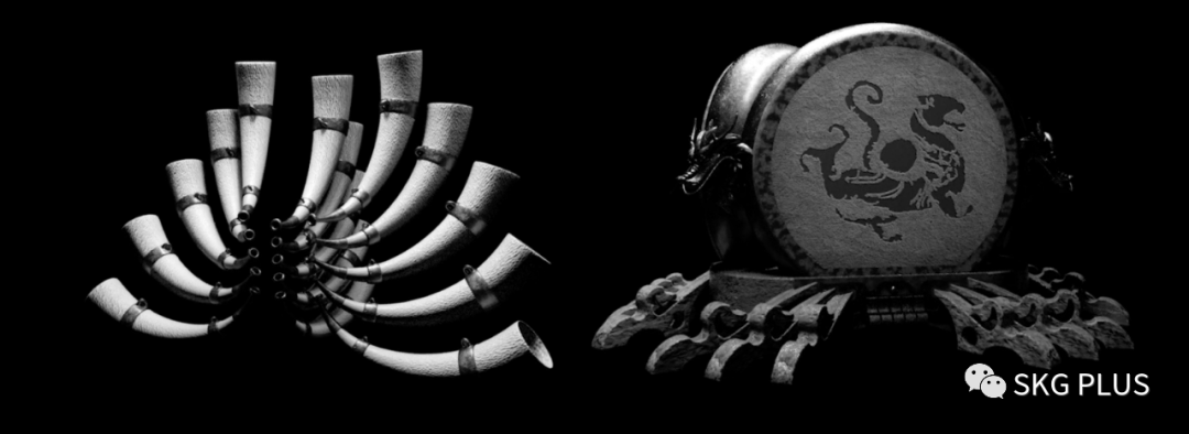 我们调研了很多汉文化中的物品元素符号,加以拆解,并进行了数字化的艺术加工,精心打磨的设计细节在整部影片里随处可见。下面只能列举一二。