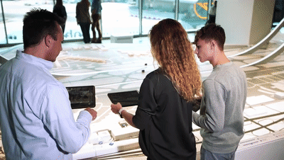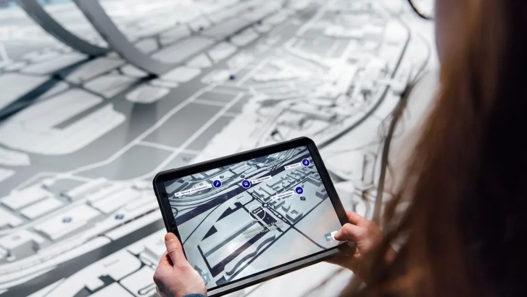 借助平板电脑,你可以准确地知道你在模型上的位置,了解模拟建筑的详细信息,还能查询目的地的导航路线。