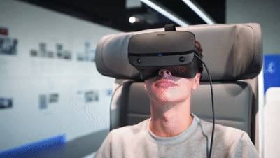 游客头上都会戴着 VR 设备,设备中会播放预先设置好的360度虚拟视频。