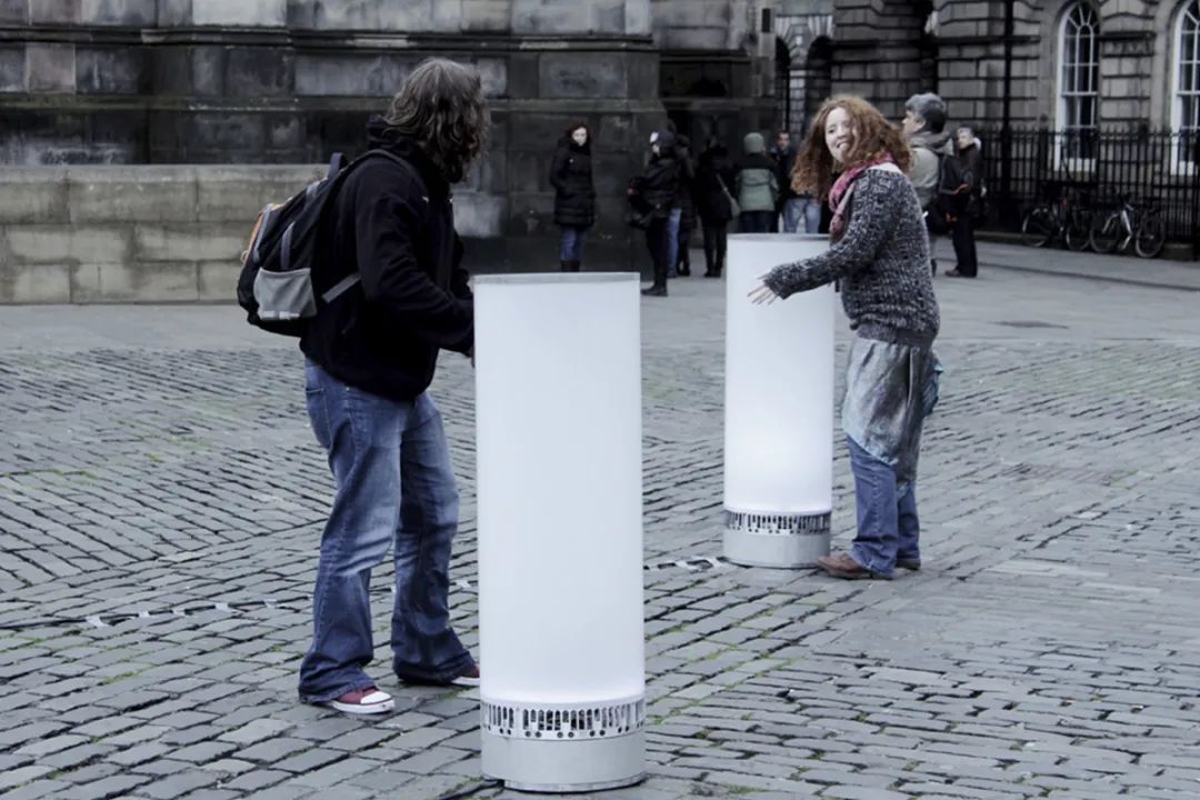Tangible Orchestra 不仅鼓励观众与装置的互动,同时提供了陌生人之间交流的空间和互动机制。为了尝试出更丰富的音乐组合,需要更多的人参与。这些机制旨在促进人与人之间的互动。聚集在一起的人越多,这场即兴演出的旋律就越丰富。