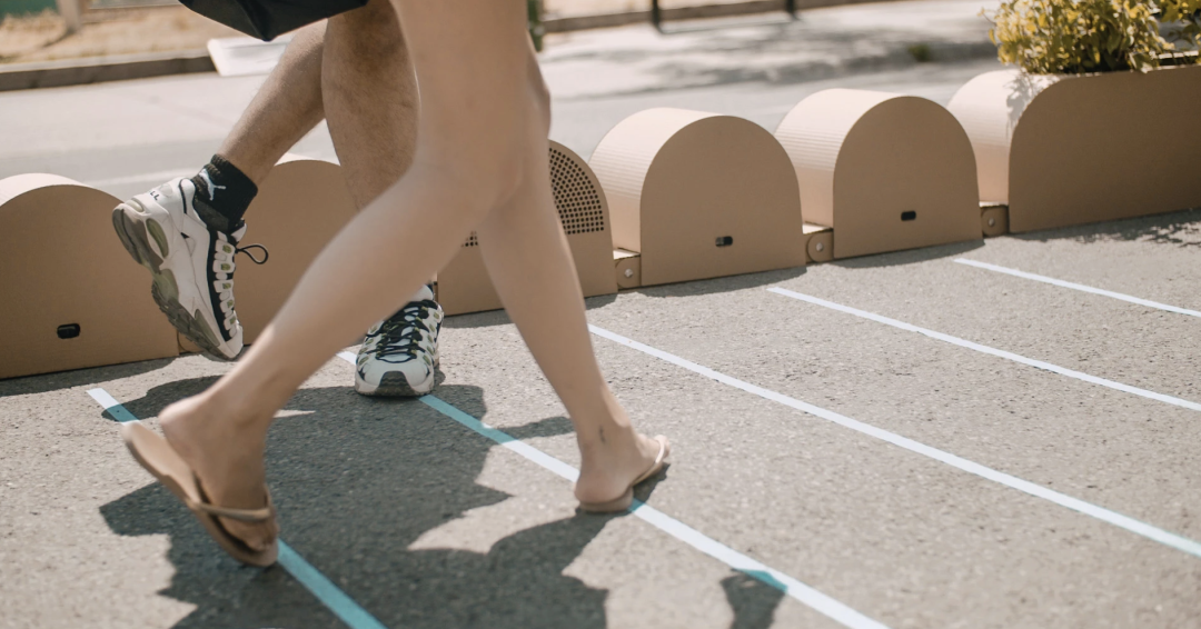 Walk Walk Dance是由加拿大设计团队DAiLY TOUS LES JOURS 创作的街道音乐互动装置。由粉笔、油漆和胶带与包裹着传感器和扬声器的纸箱,与街道盆栽景观的组成简单而有趣的互动装置。