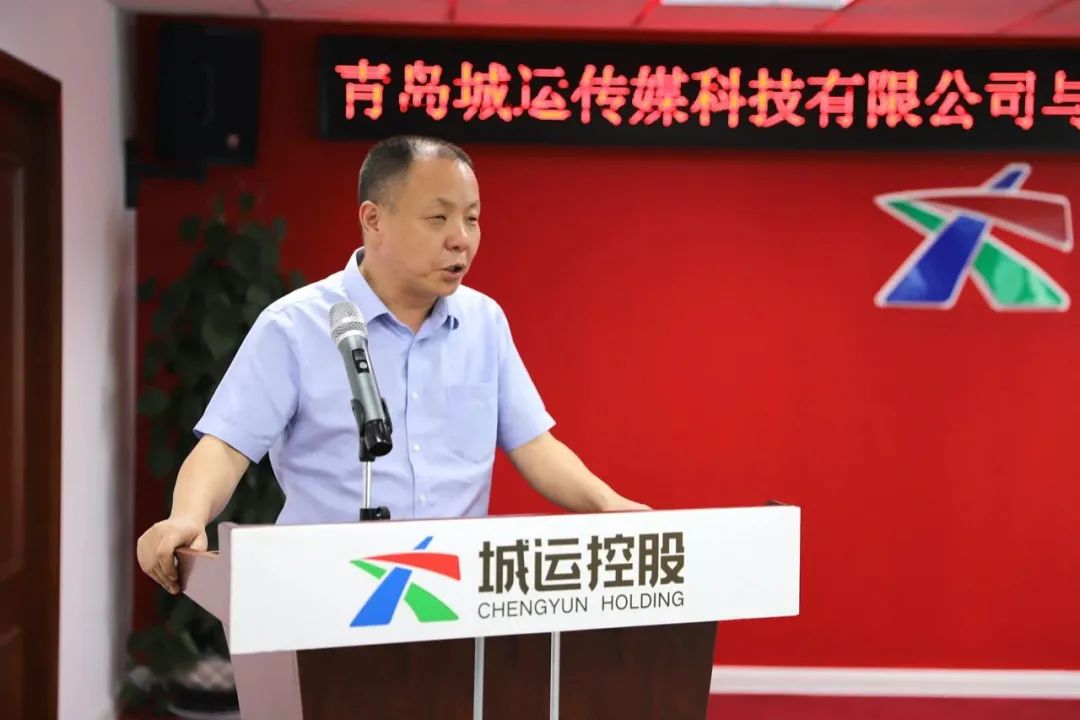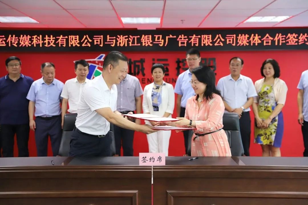 青岛城运传媒科技有限公司党支部副书记、总经理王勇军、浙江银马广告有限公司总经理杨澜代表双方签订合作协议。