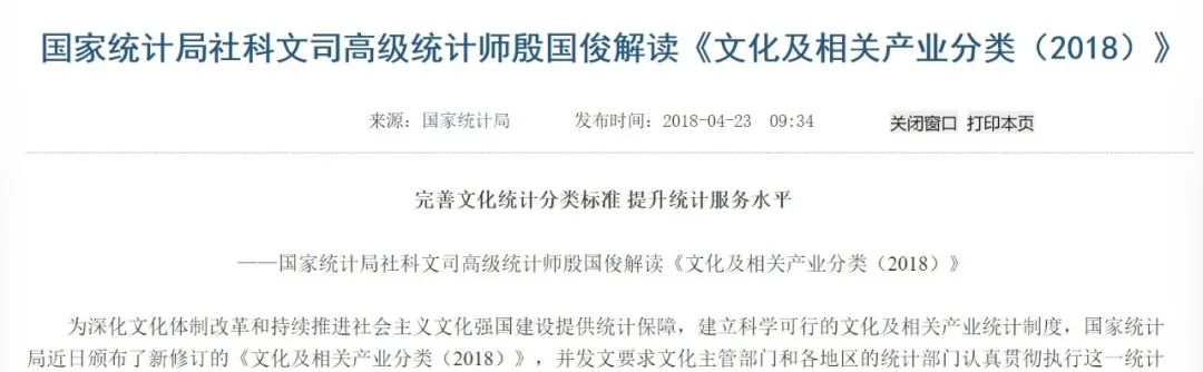 文化产业分类的基础:《国民经济行业分类》