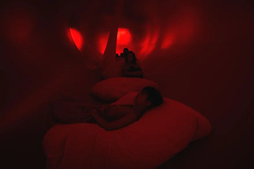 客人让自己处于冥想状态。该装置的焦点是一个脉冲聚光灯,旨在模拟太阳及其对所有生物的积极影响。太阳不断变化的颜色和亮度与音乐相协调。完成后,客人们都说感觉神清气爽,思想焕然一新。