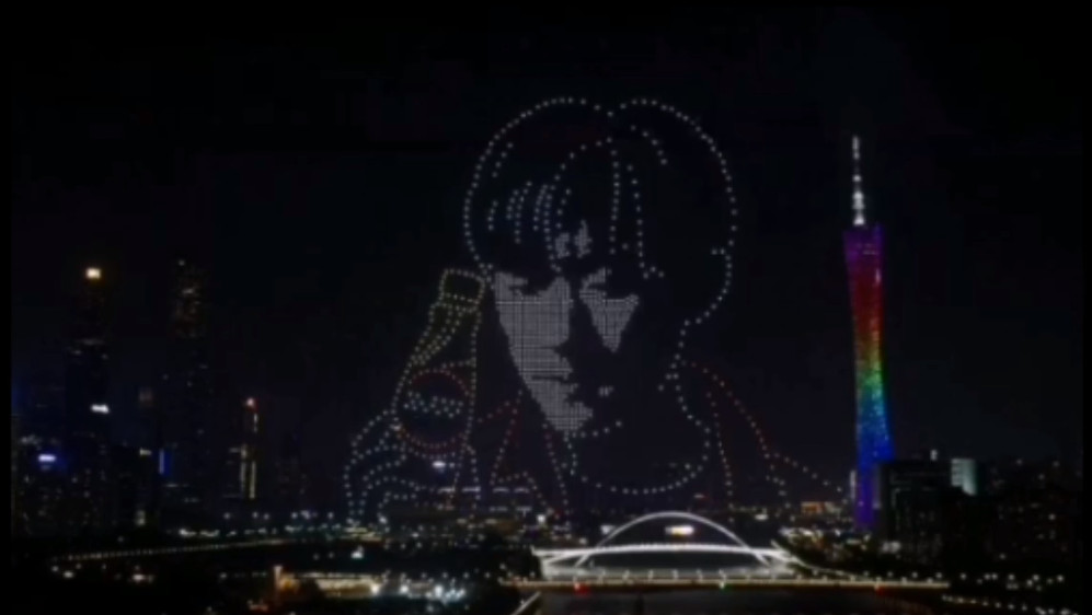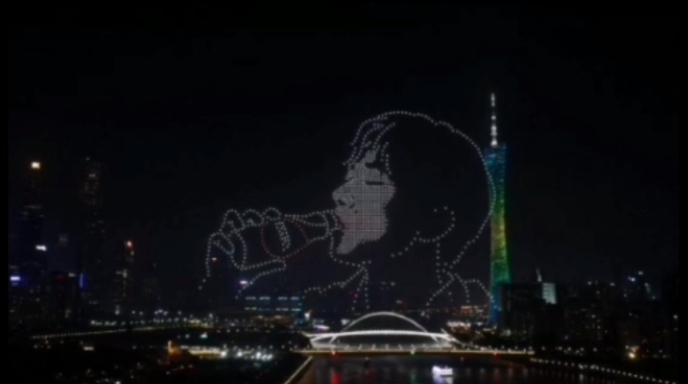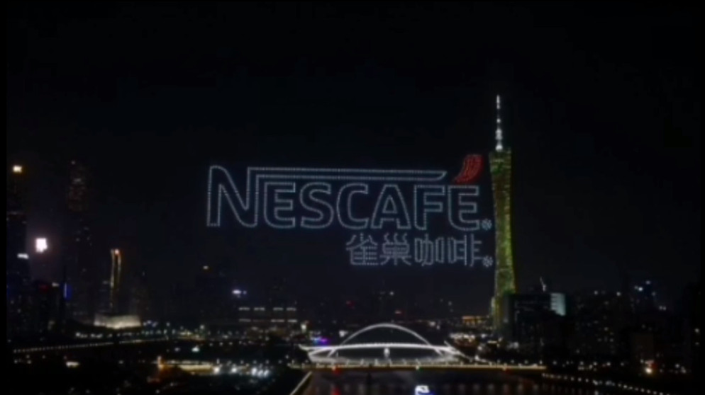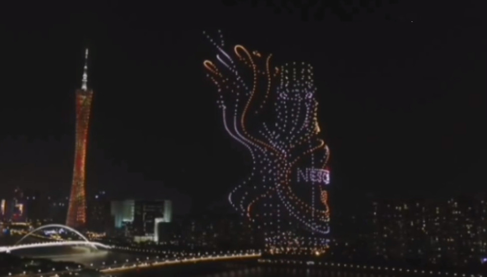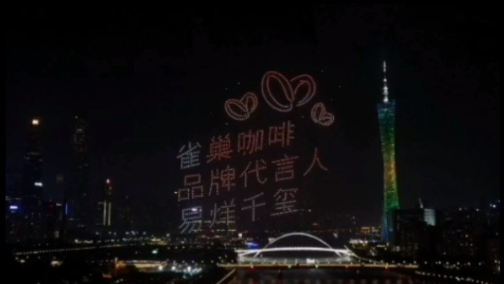 广州小蛮腰,无人机表演,雀巢咖啡,易烊千玺代言,定制无人机编队灯光秀。