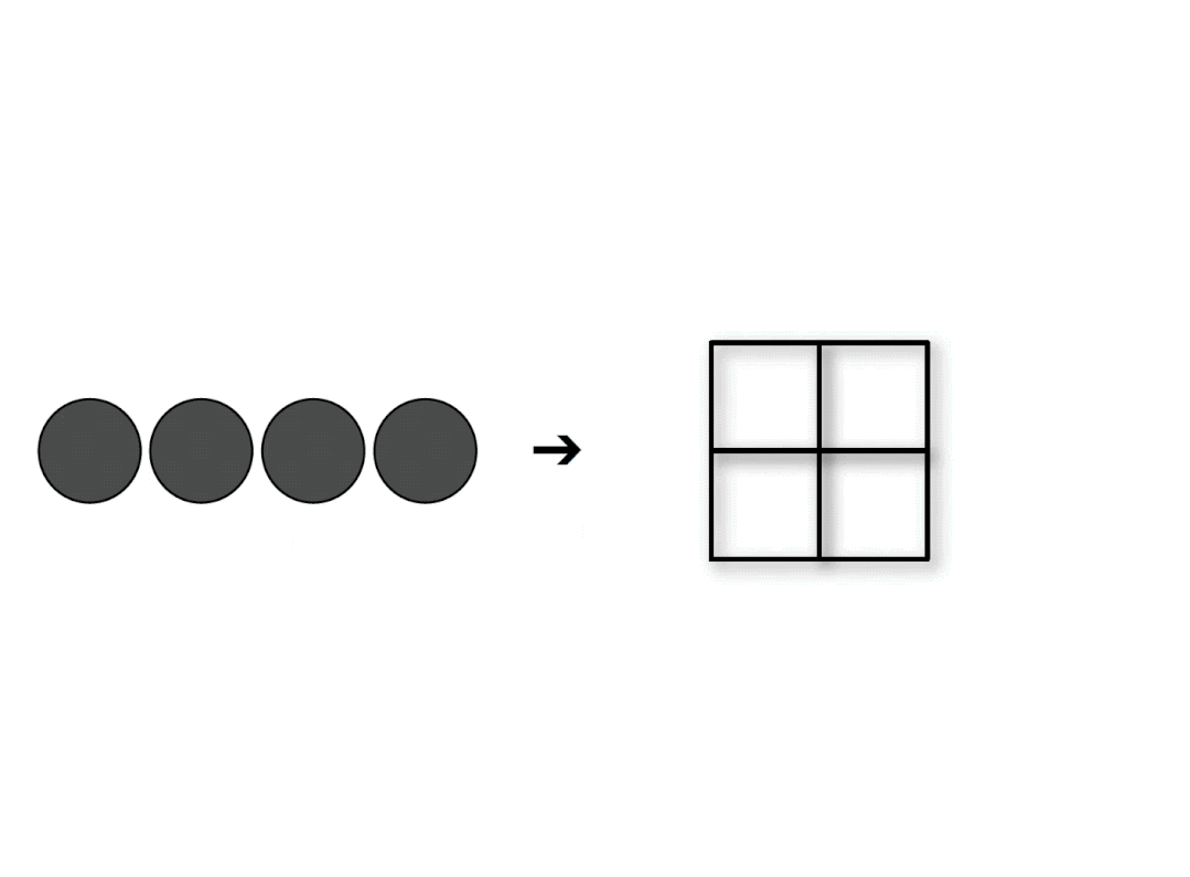 第一个例子是把四个球排列进一个盒子里,有16种摆放方法;把九个球排列进九个盒子就会产生512种结果,这些球在盒子里会产生一些形状的排列组合,这些组合在人的审美中可以分为好看(对称)的或难看(不对称)的。